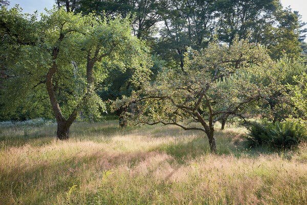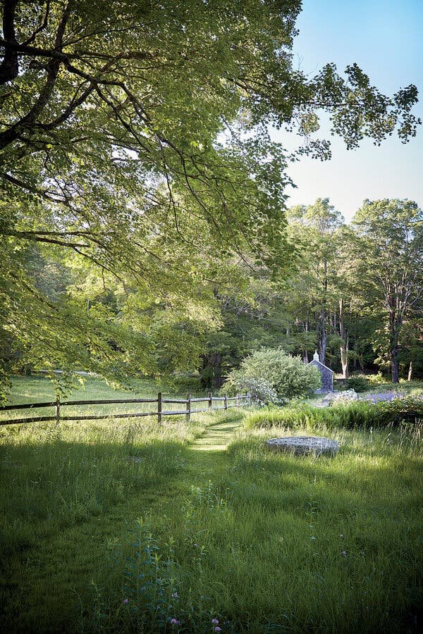 As the couple sat by one of the house’s seven fireplaces, waiting for spring, they leafed through the 2009 book “Spirit: Garden Inspiration” by the British landscape designer Dan Pearson. They had never heard of Pearson but picked it up after learning that he had included the nearby cabin of their friend John-Paul Philippe, an Oklahoma-born designer and artist, as one of the places that inspired him. Pearson described how Philippe’s modest, even stark, log cabin — built in the early to mid-19th century in the Blue Ridge Mountains of North Carolina — was moved plank by plank in the 1970s to Connecticut by an ornithologist who had spotted it from the air as he paraglided. Each winter, Philippe, who bought the five-acre property in 2006, culls the native trees and shrubs to maximize the presence of birds and wildlife, turning the place into a natural observatory.