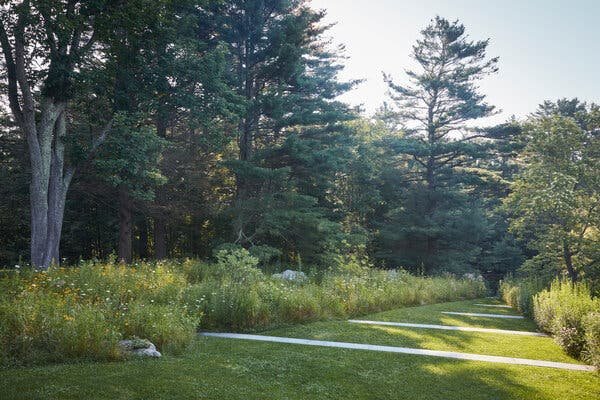 His goal was to tie all the areas together with a braided network of paths. But for that to work, the fallow sections needed to be resuscitated. Among the more herculean tasks was the revival of the meadow, which the former owner had mowed flat. “People look out at a meadow and think it’s just nature doing its thing, but it’s an incredibly complicated ecosystem,” says James McGrath, who has spent the past five years as the couple’s full-time head gardener, aided by two assistants. Born in the Bronx, he trained at Longwood Gardens in Pennsylvania, then did stints at Great Dixter, the famed Edwin Lutyens-designed property in East Sussex, England, and gardens in Jerusalem, the Netherlands and Madrid, among others. In close collaboration with Pearson (they check in by phone or email monthly), he works to beat back the aggressive species, like Solidago rugosa, and plants more than 1,000 plugs each year — specially ordered patches of native plants. Five years into Pearson’s work on the property, the narrow, mowed path now winds through stretches of fragrant lavender-hued bergamot and the pale pink umbellifers of joe-pye weed.